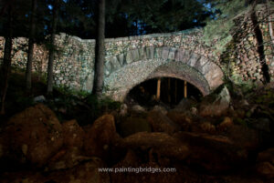 In July 2012, Howie conceived of a community art project utilizing the photographic technique of light painting on the historic stone bridges of Acadia National Park. His idea was to assemble a team of volunteers who, wielding flashlights, would “paint” a bridge with light while he created a long-exposure photograph. For the next nine months, a growing cohort of co-artists journeyed at twilight to each bridge on Acadia’s carriage roads. By spring of 2013, stunning photographs of all 16 historic Rockefeller bridges and both gatehouses had been completed with the help of 150 volunteers.
