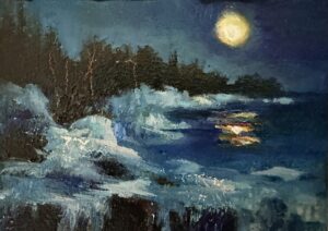 This exhibit is available to view in the Mellon Room during the library’s operating hours during the month of February. Occasionally, the Mellon room is booked for private use, if you are making a special trip to see the exhibit, please call ahead to check availability at 207 276 3333. Some work will be for sale; a portion of the proceeds will be donated to the library.